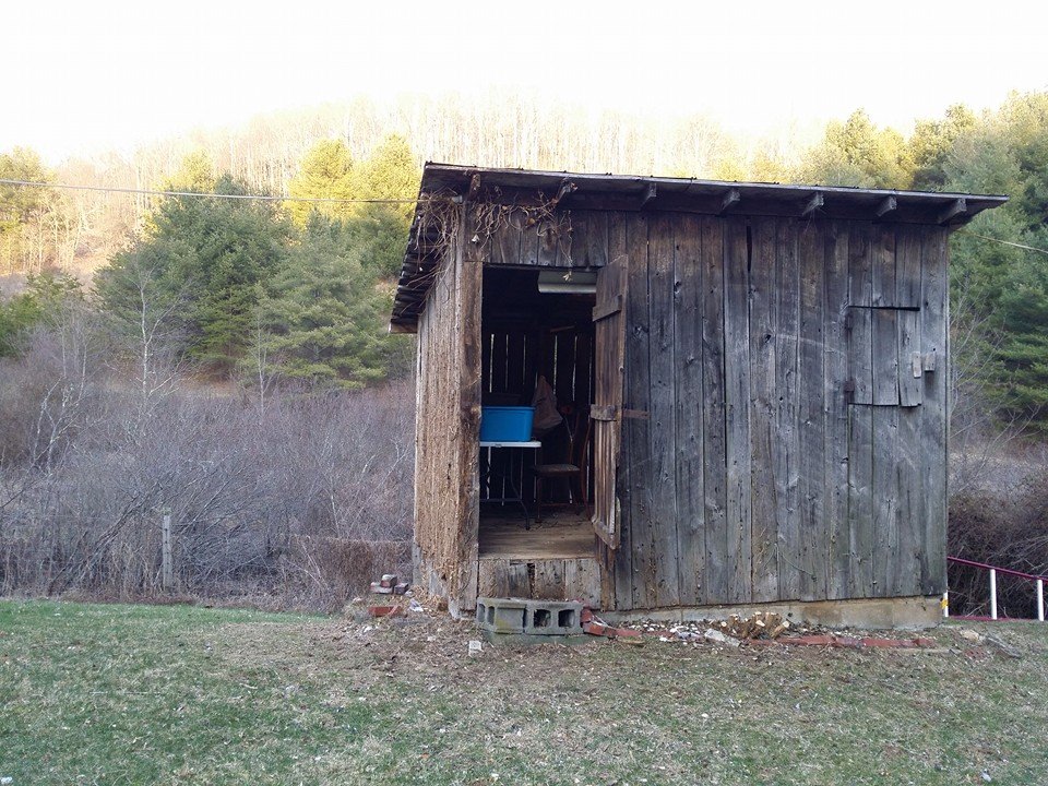 Ok, that’s the quick rundown. Now, 2 minutes per tree…4000 trees…that’s 8000 minutes! 8000 minutes of doing the exact same thing over and over and over again. At first this was a lot of fun because grafting is really cool. It’s like putting frankenstein together, only less scary and ultimately ending in delicious fruit. This fun didn’t last very long, though. I started day-drinking beer around the time when my cuticles started to bleed (probably day 6-or-2880 minutes). It was also really cold and as you can see from the picture below, my grafting shed was (it’s now remodeled) a bit breezy.
