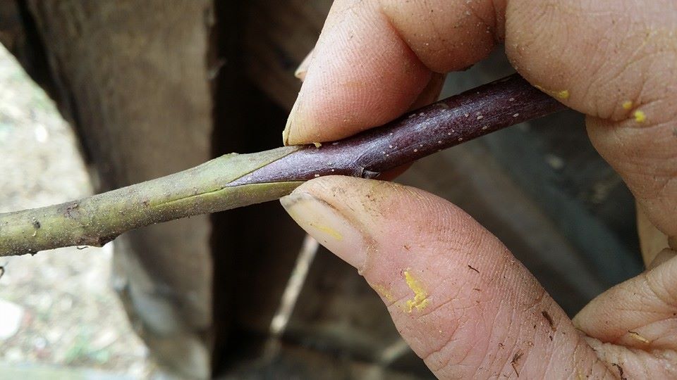 4.) Cut scionwood. Cut Rootstock. Stick them together so the vascular cambium from each are making as much contact as physically possible.